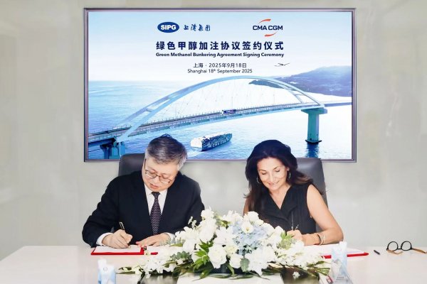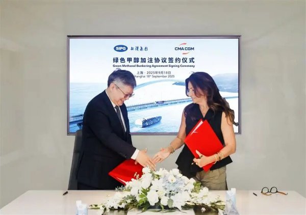 2025年9月18日,達飛集團與上港能源在上海簽署 《生物質(zhì)甲醇加注服務(wù)合同》。此次合作標志著嶄新的里程碑,為國際航運能源轉(zhuǎn)型和低碳發(fā)展注入強勁的綠色動能。