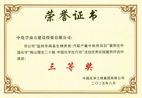 近日,由常州恒寧能源設(shè)備有限公司承建的《益陽市南縣生物質(zhì)炭-汽聯(lián)產(chǎn)集中供熱項目》在中國化學(xué)工程集團公司組織開展的“綠水青山就是金山銀山”優(yōu)秀實踐案例征集活動中,榮獲三等獎。